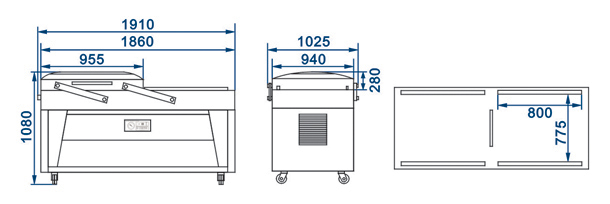 DZ-500-2SB double chamber vacuum packing machine use a lid to cover the two vacuum chambers alternatively in order to improve the working efficiency, when one of them is processing, the other could be used to accommodate contents.Scope of Application