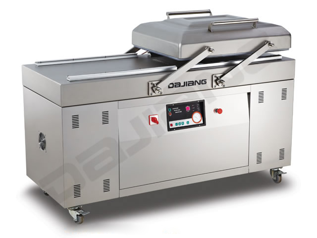 Double chamber vacuum packing machine is characterized by automatic process of vacuuming, sealing, printing, cooling, which is used in vacuum packaging food, pharmaceutical, chemical and electric industries.
