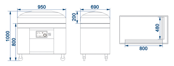 Regarding to the main structure, the vacuum packaging machine is primarily made of 304 Stainless Steel.The DZ-800 vacuum sealer is equipped with large vacuum chamber and wide application. The sealing bar is up to 800mm, which is suitable for packing large meat and medicine.